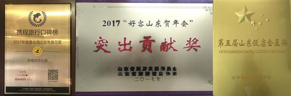 2017“好客山東賀年會(huì )”突出貢獻獎(山東省旅游發(fā)展委員會(huì )、山東省旅游飯店協(xié)會(huì ), 2017.1)