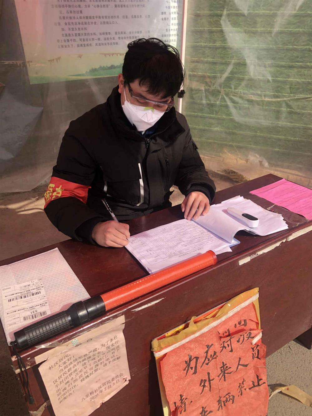 根據居委會(huì )安排,柴楠每天在社區出入口進(jìn)行詢(xún)問(wèn)登記、測量體溫、疫情宣傳、人員排查等工作。2020年的第一場(chǎng)春雨給疫情防控工作帶來(lái)了更大的難題,他身披雨衣,在刺骨的寒風(fēng)和冰冷的細雨中一絲不茍的測體溫、查驗身份證、做好信息登記…一忙就是整整一天。