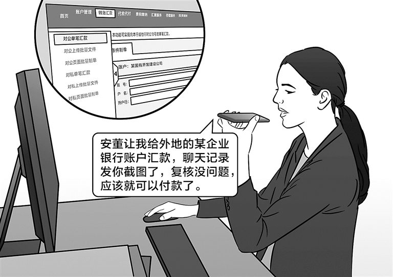黃某某輕信上述信息,在未向董事長(cháng)安某某當面或電話(huà)核實(shí)、且未見(jiàn)到任何書(shū)面審批手續的情況下,擅自向外地企業(yè)銀行賬戶(hù)發(fā)起、錄入網(wǎng)銀支付,并將聊天群內的截圖發(fā)送給該公司會(huì )計華某某(另案處理),要求其進(jìn)行復核付款。