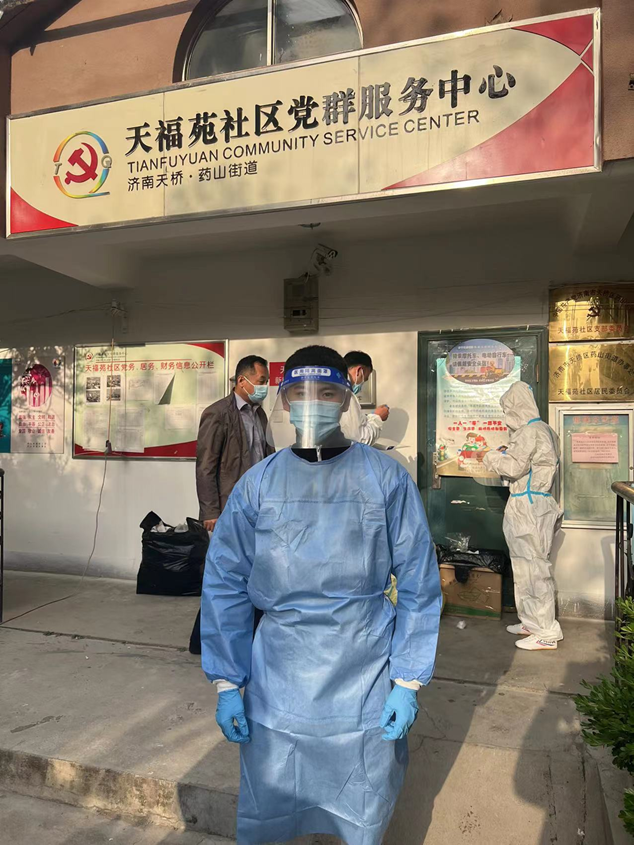 4月27日一早,來(lái)自濟南科技創(chuàng )業(yè)投資集團有限公司黃金和張澤陽(yáng)就趕赴胥家村,站好健康查驗點(diǎn)的第一班崗;濟南經(jīng)發(fā)基金管理有限公司的崔家浩與天橋區天福苑檢測點(diǎn)人員正做著(zhù)做好核酸檢測維持秩序工作;濟南產(chǎn)發(fā)資產(chǎn)管理有限公司的任政分配到槐蔭區興福街道濟西社區,與其他參與防疫的人員一起接受崗前培訓后,迅速上崗;濟南經(jīng)發(fā)中小企業(yè)服務(wù)有限公司的謝炳怡與小鴨集團的劉玉峰、金德利集團的劉相濤一起前往高新區臨港街道,接受工作任務(wù)。隨后,趙梓淇、董振興、高志翔、張樂(lè )等幾名同事也投身于防疫的志愿者隊伍中。
