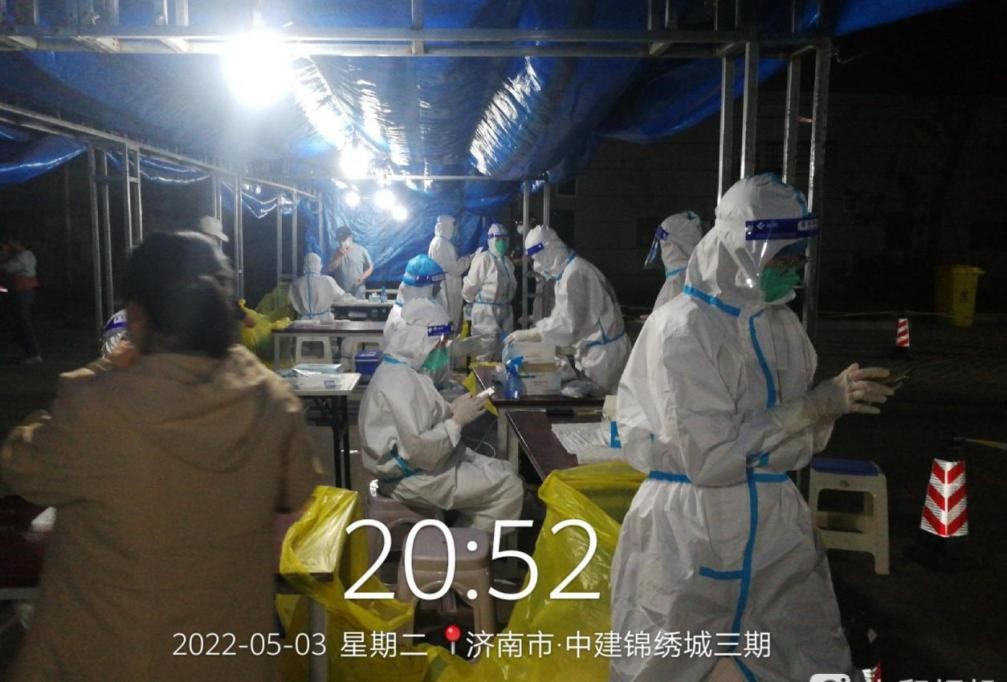 集團支援天橋區濱河雅居的下沉人員由翟思成帶隊,帶領(lǐng)郭正亮、杜瑞帥、趙士民、楊世興、馮鵬飛等5名志愿者,自4月27日進(jìn)駐濱河雅居社區以來(lái),他們聽(tīng)從社區安排,進(jìn)行核酸檢測維持秩序,人員摸排、統計數據等工作?!懊刻煜掳喽嫉猛砩?0點(diǎn)半了”, 翟思成說(shuō),為保證社區居民核酸檢測不漏一人,雖然大家的居住地距離濱河雅居都很遠,但還是克服重重困難按時(shí)到崗,盡職盡責地完成社區工作。特別是自4月28日以來(lái),濱河雅居樓棟出現密接和次密接,需要24小時(shí)管控,金鐘集團的志愿者白天維持核酸檢測秩序、給管控居民送菜送食品,晚上還要值夜班、進(jìn)行住戶(hù)摸查,條件艱苦、工作勞累,但是志愿者們沒(méi)有怨言、只有擔當,他們用實(shí)際行動(dòng)踐行國企責任,使命擔當。