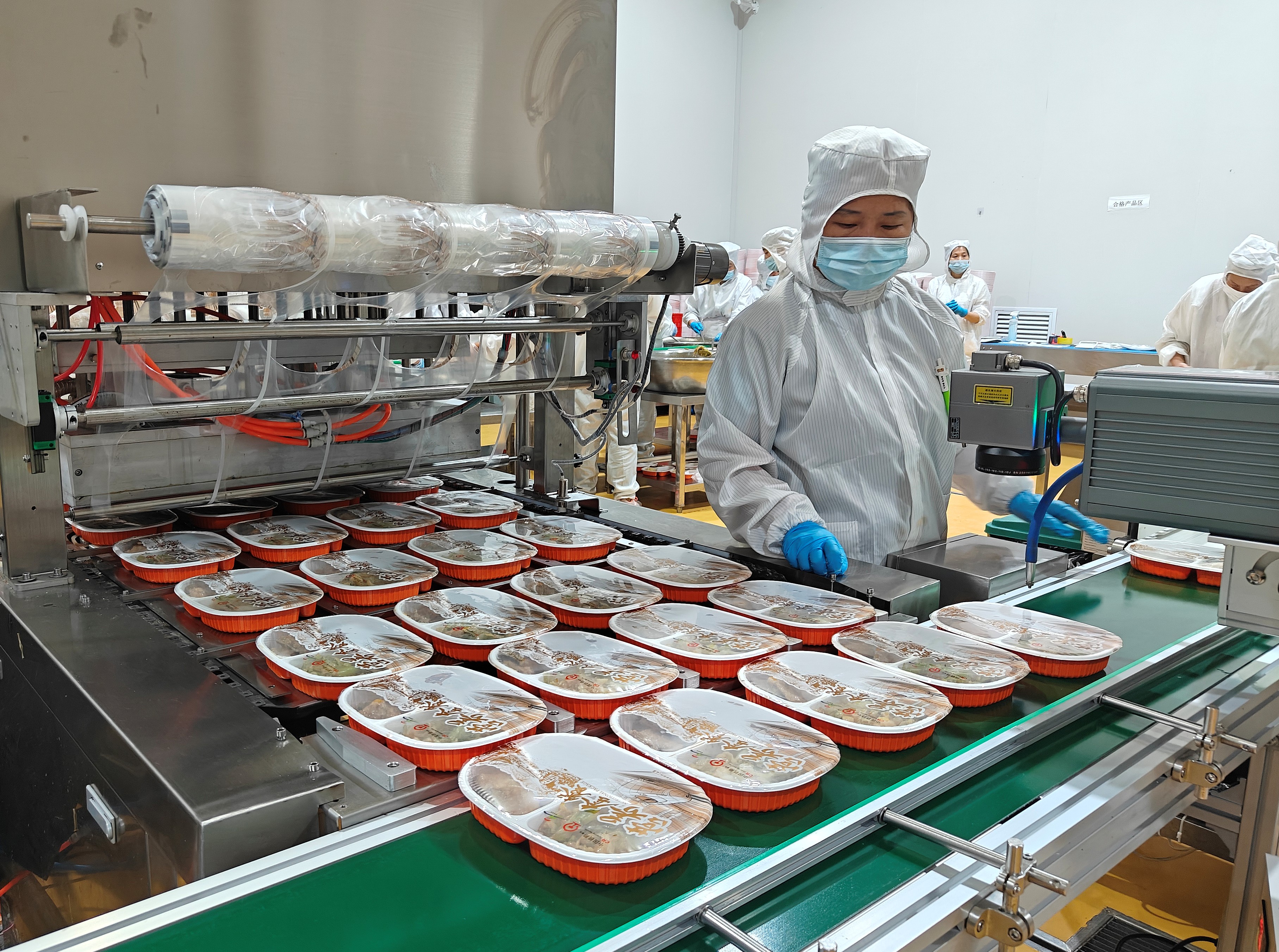 目前,金德利冷鏈配餐生產(chǎn)線(xiàn)已實(shí)現全程自動(dòng)化無(wú)縫銜接。從烹飪、檢測、分裝,到覆膜、賦碼、貼標,再到冷凍保鮮和智能裝箱,整套流程貫穿智能化與標準化理念。每日超過(guò)4000份高品質(zhì)冷鏈餐食通過(guò)高速列車(chē)送達旅客手中,以實(shí)際行動(dòng)踐行“國企餐飲 安全優(yōu)質(zhì)”的品牌承諾。