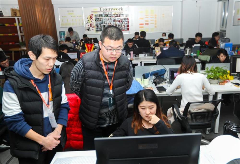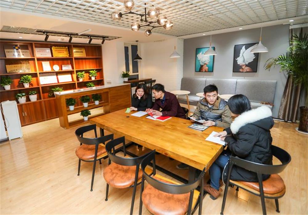 在4樓眾創(chuàng )空間,聚集著(zhù)50多家在孵跨境電商企業(yè),多數都是90后創(chuàng )業(yè)人員。25日臨近傍晚6點(diǎn),不少創(chuàng )客仍埋頭忙碌。在眾創(chuàng )空間打造的咖啡吧,幾個(gè)年輕人正探討業(yè)務(wù)。
