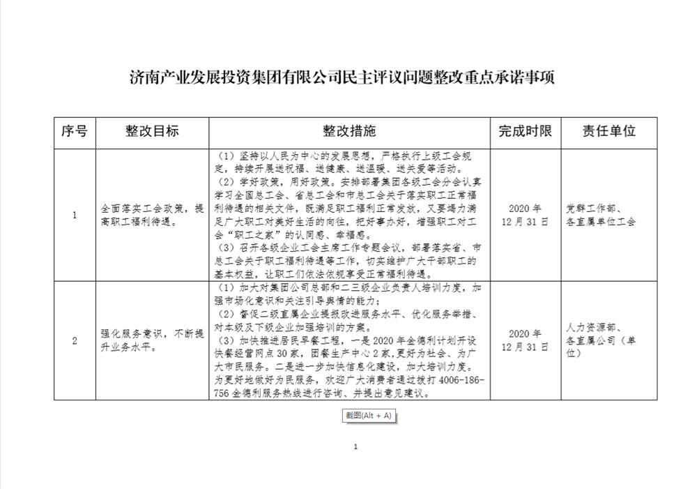產(chǎn)發(fā)集團民主評議問(wèn)題整改重點(diǎn)承諾事項